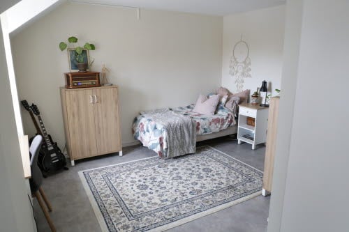 • Alla rum är möblerade med säng med madrass, sänglampa, sängbord, skrivbord, arbetsbelysning, stol och bokhylla. Rummen hyrs möblerat och möblerna får inte flyttas ut ur rummet.