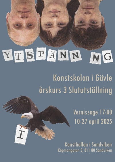 Vernissage 10 april 17.00, Konsthallen i Sandviken. Utställningen visas till och med 27 april.