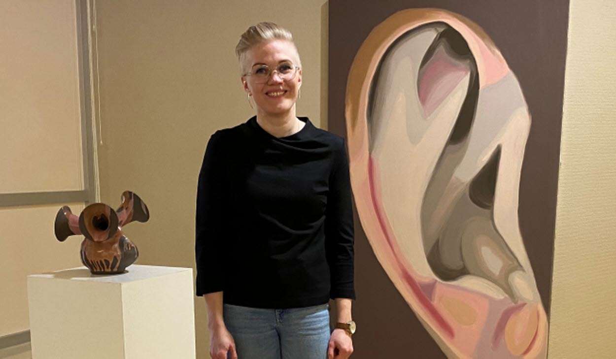 ”Jag har gjort en skulptur bestående av ett skogsrå vilket är avbildat som en kvinnlig gestaltning med ett hål i ryggen. Skogsrået sitter och täljer på en bit trä vilket blir föremål som är mer eller mindre representativa för allmänna träobjekt i...