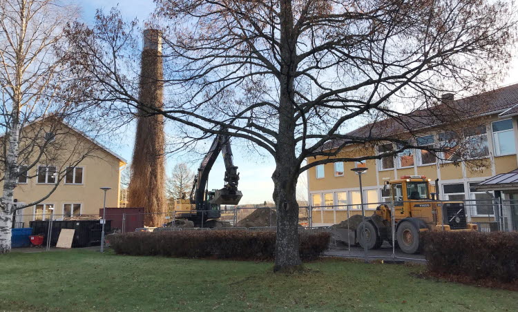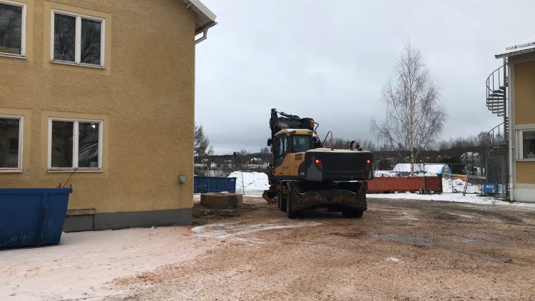 Grävningarna på skolans område fortsätter. Det är ett omfattande arbete och groparna förflyttar sig sakteliga. Vi har under flera veckor haft en tillfällig entré till hus 01, men nu har arbetet förflyttat sig så att ordinarie entré till huset är öppen igen.