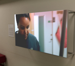 Filmen installerades strax innan pandemin bröt ut, vilket i efterhand ger verket en särskild tyngd. Det som tidigare var osynligt blev under den tiden akut synligt – inte minst betydelsen av det arbete som håller vården ren, trygg och fungerande.