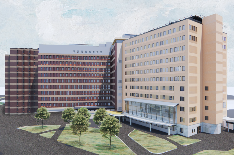 Påbyggnaden med sex våningar ger mer yta för öppen vårdverksamhet med goda samband till sjukhusets centrala delar och en ny helikopterplatta byggs på taket.