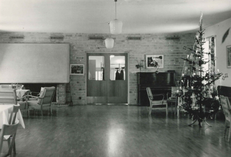Månadens fotografi föreställer en jul på lasarettet vid mitten av förra seklet. Så här såg det ut i personalens matsal och samlingsrum när man pyntat inför personalens jullunch. Doktor Sjöberg var känd för att älska julen. Han kom till lasarettet från Hudiksvall där han varit förste underläkare. I grund och botten var han skåning som talade bred skånska. Då han anlände till Bollnäs sa disponent Lindström till honom ”nu får förbanne mig doktorn tala svenska så vi förstår honom!”. Då svarade Sjöberg ”då fordrar jag att även mina patienter talar svenska”.