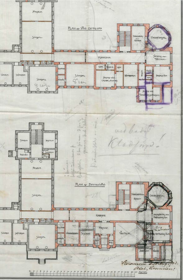 Regionarkivet har ett omfattande bestånd av ritningar från alla regionens verksamheter, daterade från 1800-talet till 2000-tal. Bland ritningarna finns inte bara lasaretten, sjukhusen och hälsocentralerna – här finns också skolor, ekonomibyggnader, avloppsystem, hissar och mycket annat. De tidiga ritningarna vittnar om ett otroligt handarbete, med mycket detaljer och vackra handstilar. Genom decennierna blir stilen stramare, både i arkitekturen och ritningarnas utformning, men visar likväl på kreativitet och handens uttryck.