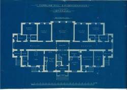 På denna ritning, gjord av arkitekt Sten Dalén år 1947, ser vi en hönshusbyggnad med utgrävd källare, som byggdes vid Gysinge vårdhem. Vårdhemmet startade som ett bygdesanatorium och epidemisjukhus, men övergick senare till att bli vårdhem för personer med psykisk sjukdom och var i drift fram till 1980-talet.