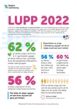 Ungdomsenkäten LUPP visar hur unga i Gävleborg upplever sin hälsa, trygghet, fritid och framtid. Resultaten används som underlag för att förbättra ungas livsvillkor i länet.