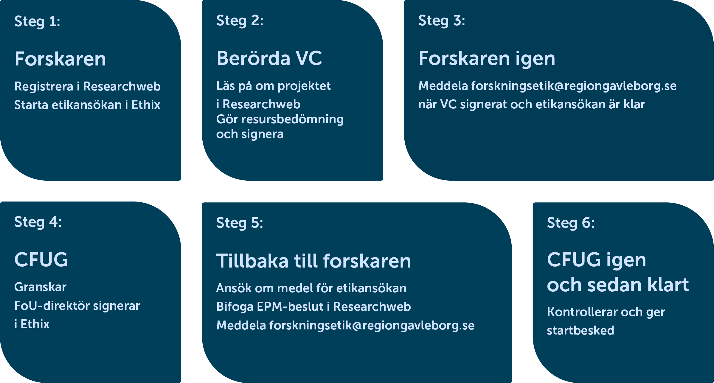 Sammanfattning av etikprövningsprocessen där Region Gävleborg är forskningshuvudman.