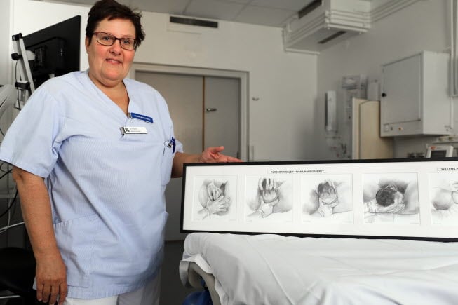 Förlossningsvården i Hudiksvall har gjort sig rikskända genom införandet av ”finska greppet”, en metod att stödja muskulaturen vilket minskar förlossningsskadorna hos de födande mammorna. Ann-Gerd Nilsson är en av barnmorskorna som ser till att metoden praktiseras och lärs ut till nyanställda. ”Vårt mål är att hjälpa kvinnan att få den bästa upplevelse hon kan av förlossningen”, säger Ann-Gerd.
