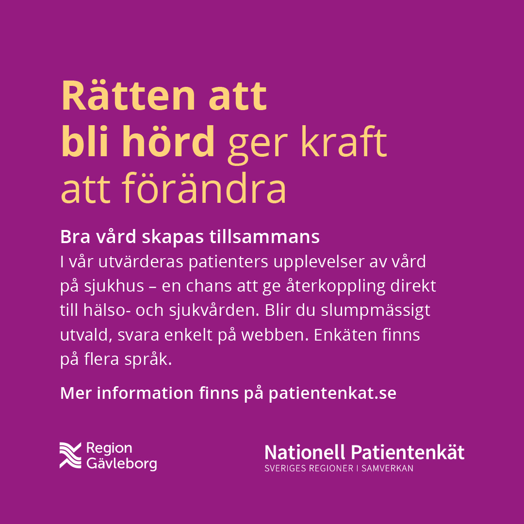 Patienters synpunkter på vården är en viktig källa för att ständigt förbättra vården. Genom att delta i Nationell Patientenkät får patienter möjlighet att berätta om och svara på frågor rörande sina erfarenheter och upplevelser av vården.
