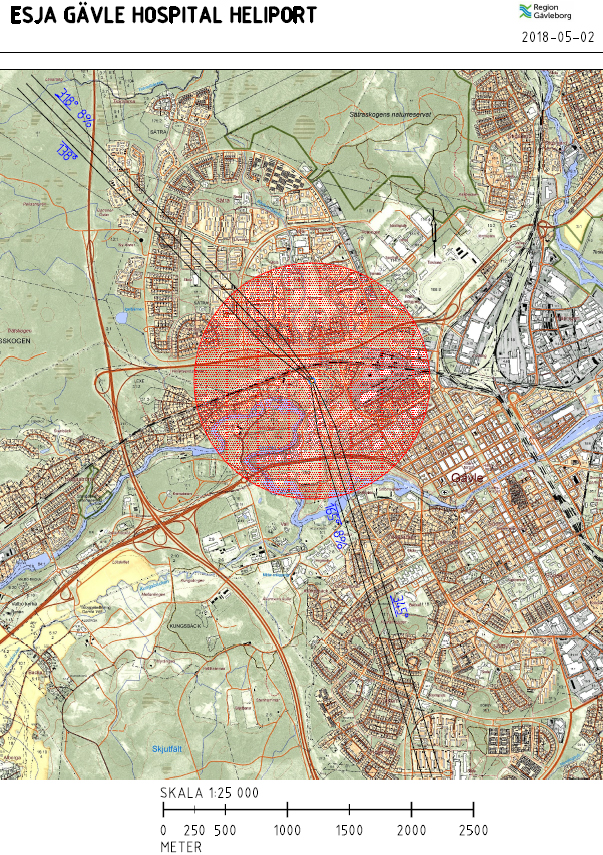 Flygfakta för helikopterflygplatsen på Gävle sjukhus.